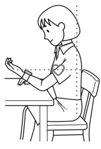 فرد روی صندلی بنشیند، پشت صاف و پشتش تکیهگاه داشته باشد، پاها صاف روی زمین قرار بگیرند.